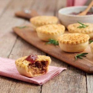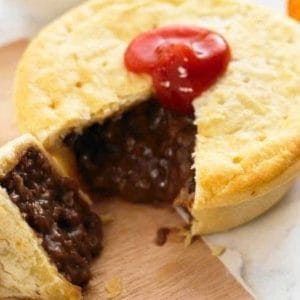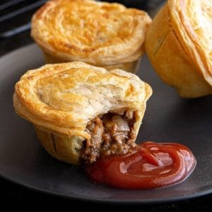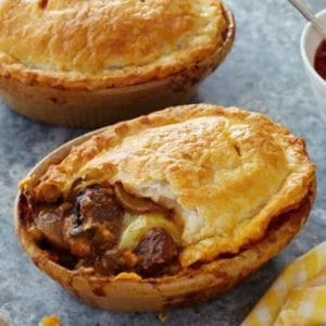 Bánh Pie vỏ mỏng giòn với phần nhân là thịt bò Úc 100%.
