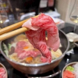 Từng lát thịt bò, béo thơm nhúng ngập trong phần nước dùng lẩu đậm đà – ngon hết sảy. Vị mềm thơm, béo ngậy chỉ có ở Bò Kobe Nhật thượng hạng ăn rất thích luôn .