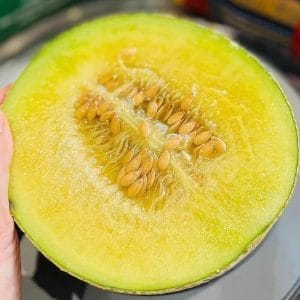 Dưa này để mềm mới ngọt thơm ạ, bỏ ra xúc ăn chứ minh ko phỉa ăn gọt vỏ giống dưa mật ruột cam nhé.