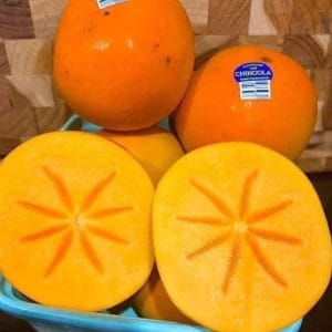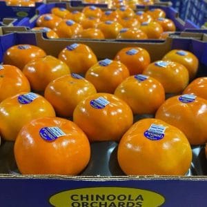Hồng giòn Úc quả to , hơi dẹt , màu cam . Đầu mùa là lúc ngon nhất để thu hoạch.
