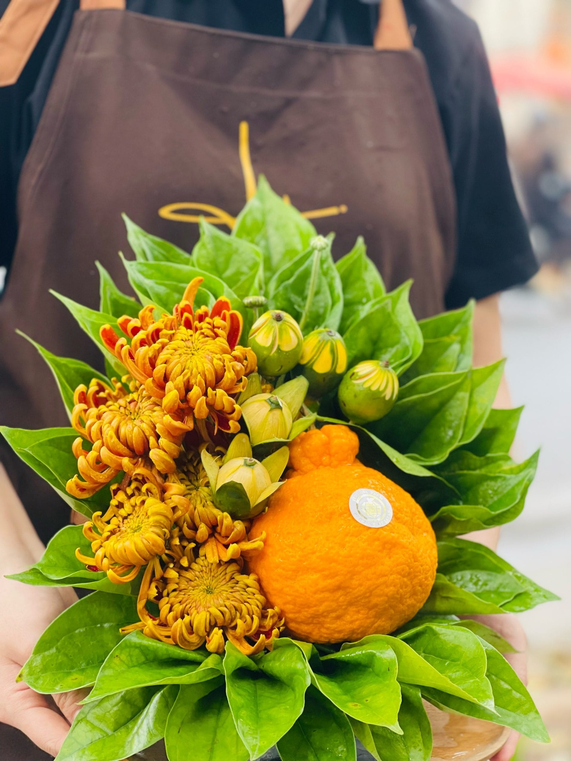 Set gồm trầu cau và quýt chum Nhật bản mọng nước mộn giỏ lễ xinh ngoan yêu thể hiện tâm ý của người đi lễ