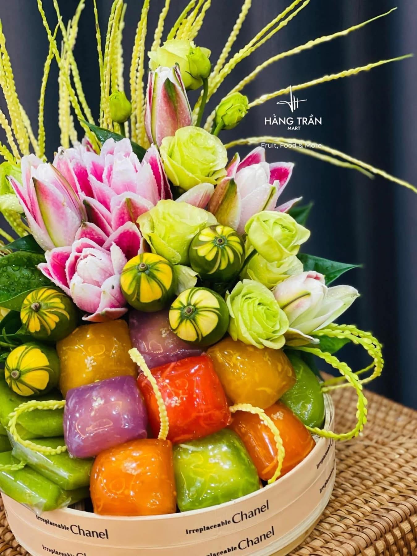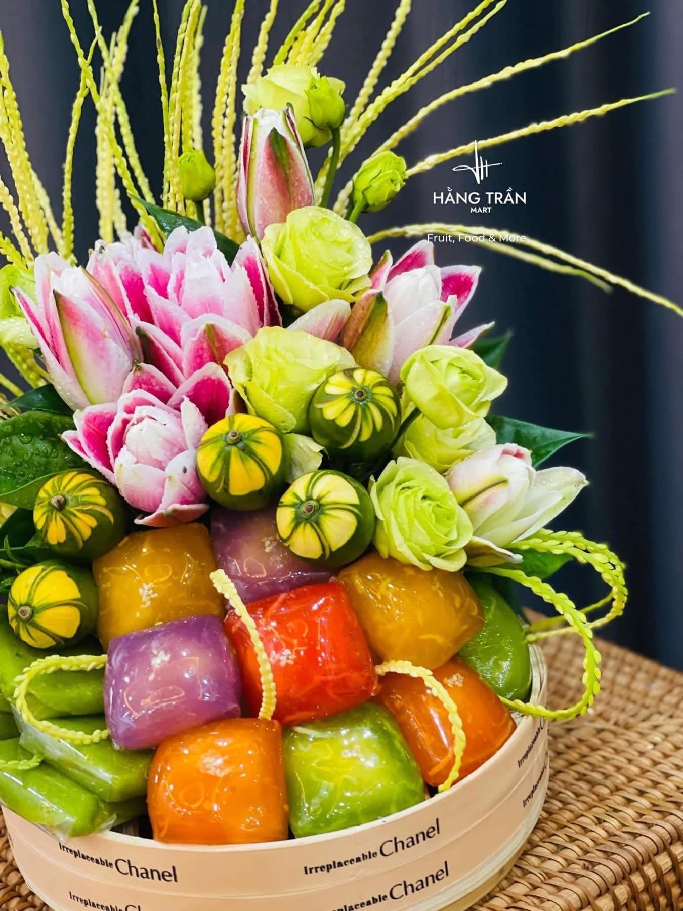 Mẹt hoa lễ bánh xu xuê nổi tiếng thơm ngon hàng than mix cùng hoa cau , trầu lễ , để các Bác dâng hương mùng 1 tháng thanh minh cho thật rực rỡ và ý nghĩa nha🥰